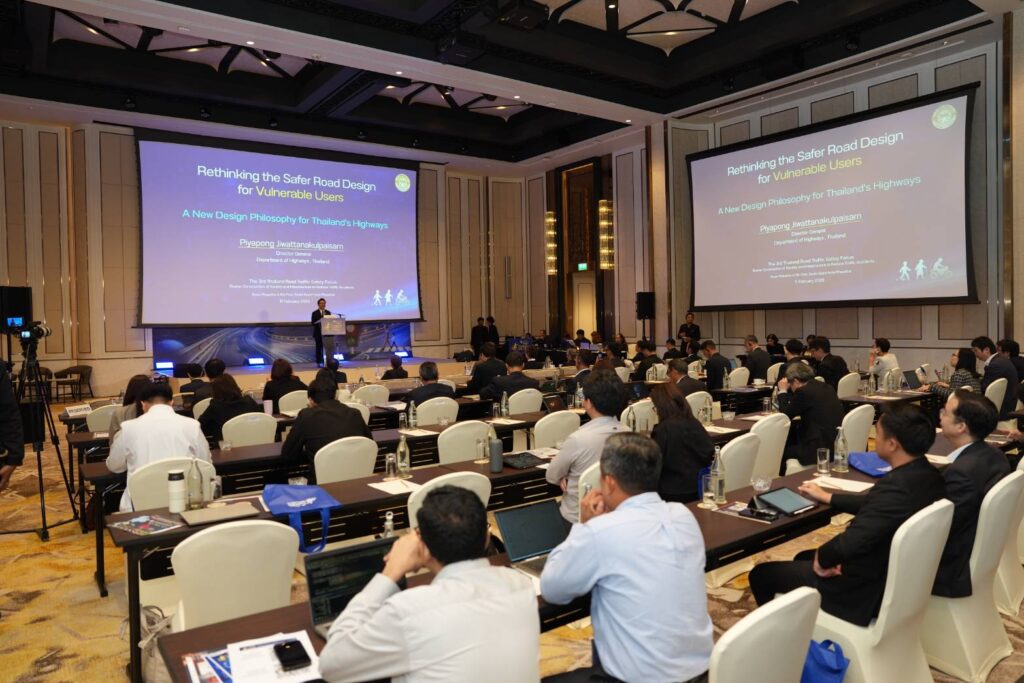 ”วันนี้ (11 ก.พ. 69) เวลา 09.30 น. ณ ห้อง Phayathai 4 ชั้น 6 โรงแรม อีสติน แกรนด์ พญาไท ดร.ปิยพงษ์ จิวัฒนกุลไพศาล อธิบดีกรมทางหลวง เป็นประธานเปิดการประชุมด้านความปลอดภัยทางถนน ครั้งที่ 3 (The 3rd Thailand Road Traffic Safety Forum) หัวข้อ : การพัฒนาสังคมและโครงสร้างพื้นฐานเพื่อลดอุบัติเหตุทางถนน ที่จัดขึ้นโดยศูนย์วิจัยอุบัติเหตุแห่งประเทศไทย Thailand Accident Research Center หรือ TARC โดยมีผู้บริหารกรมทางหลวง หน่วยงานภาครัฐ และองค์กรสำคัญด้านอุบัติเหตุ ตลอดจน สื่อมวลชน เข้าร่วมงาน ดร.ปิยพงษ์ จิวัฒนกุลไพศาล กล่าวว่า ปัญหาอุบัติเหตุทางถนนยังคงเป็นความท้าทายสำคัญของประเทศไทย ที่ส่งผลกระทบต่อชีวิต ทรัพย์สิน คุณภาพชีวิตของประชาชน ตลอดจนต่อการพัฒนาเศรษฐกิจและสังคมโดยรวม การแก้ไขปัญหานี้ไม่สามารถอาศัยมาตรการด้านใดด้านหนึ่งเพียงลำพัง แต่จำเป็นต้องอาศัยความร่วมมือจากทุกภาคส่วน ทั้งในมิติของการพัฒนาสังคม การสร้างวัฒนธรรมความปลอดภัย และการพัฒนาโครงสร้างพื้นฐานด้านคมนาคมที่ปลอดภัย โดยการประชุมในครั้งนี้จัดขึ้นภายใต้หัวข้อ “การพัฒนาสังคมและโครงสร้างพื้นฐานเพื่อลดอุบัติเหตุทางถนน” ซึ่งสะท้อนให้เห็นถึงแนวคิดที่สอดคล้อง กับทิศทางการดำเนินงานด้านความปลอดภัยทางถนนในระดับสากล ซึ่งให้ความสำคัญกับการออกแบบระบบคมนาคมที่คำนึงถึงความปลอดภัยของผู้ใช้ทางทุกกลุ่ม โดยนำข้อมูลและงานวิจัยสนับสนุนการตัดสินใจเชิงนโยบาย ตลอดจนการสร้างความตระหนักรู้และความรับผิดชอบร่วมกันของสังคม ซึ่ง กรมทางหลวง ในฐานะหน่วยงานด้านโครงสร้างพื้นฐานได้ให้ความสำคัญอย่างยิ่งกับการยกระดับมาตรฐานความปลอดภัยทางถนน การนำองค์ความรู้ เทคโนโลยี และนวัตกรรมมาประยุกต์ใช้ในการออกแบบ ก่อสร้าง บำรุงรักษา และปรับปรุงจุดเสี่ยงอันตราย รวมถึงการบูรณาการร่วมกับหน่วยงานที่เกี่ยวข้อง เพื่อให้ระบบคมนาคมของประเทศมีความปลอดภัยมากยิ่งขึ้นอย่างต่อเนื่องสำหรับการจัดงานในครั้งนี้ มีเป้าหมายเพื่อเปิดพื้นที่ให้หน่วยงานที่ปฏิบัติงานด้านอุบัติเหตุทางถนน ได้ร่วมกันแลกเปลี่ยนประสบการณ์ องค์ความรู้ งานวิจัย และแนวปฏิบัติที่ดีในด้านความปลอดภัยทางถนน ส่งเสริมความร่วมมือระหว่างหน่วยงานที่เกี่ยวข้องในการสร้างสังคมแห่งความปลอดภัย และการพัฒนาโครงสร้างพื้นฐานด้านคมนาคมขนส่งที่เอื้อต่อการลดอุบัติเหตุทางถนนอย่างยั่งยืน รวมทั้งสนับสนุนการกำหนดแนวทางและมาตรฐานในการลดอุบัติเหตุทางถนนของประเทศไทยอย่างเป็นรูปธรรมภายในงาน มีการบรรยายและวิเคราะห์เกี่ยวกับอุบัติเหตุต่างๆ อย่างหลากหลาย ได้แก่ ห