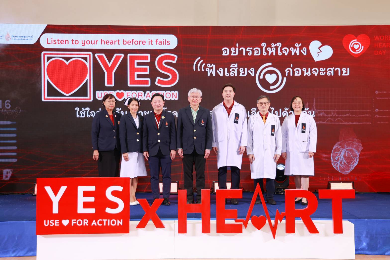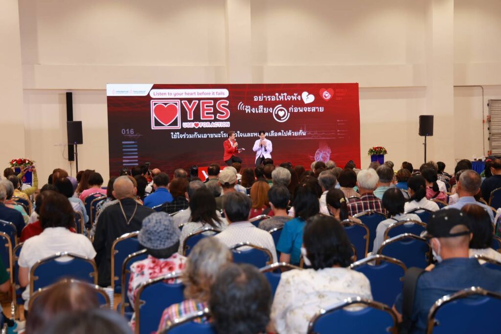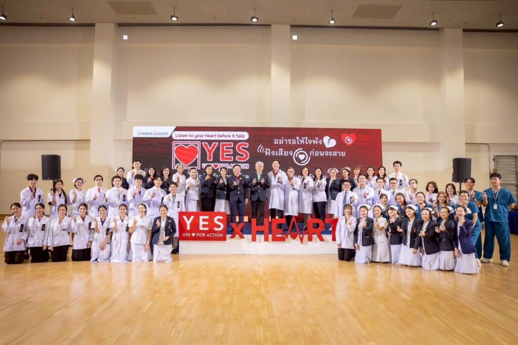 กรุงเทพฯ, 1 ตุลาคม 2568–ศูนย์หัวใจและหลอดเลือด โรงพยาบาลจุฬาภรณ์ ราชวิทยาลัยจุฬาภรณ์ จัดกิจกรรมรณรงค์บริการวิชาการส่งเสริมสุขภาพเนื่องในวันหัวใจโลก ประจำปี 2568 บูรณาการทีมแพทย์และบุคลากรสหสาขาวิชาชีพด้านการดูแลรักษาโรคหัวใจและหลอดเลือด โรงพยาบาลจุฬาภรณ์ร่วมส่งสารรณรงค์สร้างการตระหนักรู้ถึงอันตรายและภาวะต่าง ๆ ของโรคหัวใจและหลอดเลือด ภายใต้แนวคิด “อย่ารอให้ใจพัง ฟังเสียงหัวใจก่อนจะสาย” ใช้ใจร่วมกันเอาชนะโรคหัวใจและหลอดเลือดไปด้วยกัน เพื่อร่วมตอกย้ำสารรณรงค์ตามคำขวัญสมาพันธ์หัวใจโลก คือ YES USE HEART FOR ACTION ทั้งนี้ สมาพันธ์หัวใจโลกได้กำหนดให้ทุกวันที่ 29 กันยายนของทุกปี เป็นวันหัวใจโลก (World Heart Day) และได้ระบุว่า โรคหัวใจและหลอดเลือดยังเป็นสาเหตุการเสียชีวิตอันดับ 1 ของโลก โดยพบผู้เสียชีวิตด้วยโรคหลอดเลือดหัวใจ (CVD) คร่าชีวิตผู้คนไปมากกว่า 20.5 ล้านคนต่อปี แต่การเสียชีวิตก่อนวัยอันควรจากโรคหลอดเลือดหัวใจถึง 80% สามารถป้องกันได้หากเข้าถึงการรักษาที่มีคุณภาพและได้รับการคัดกรองตั้งแต่ในระยะเริ่มต้น รวมถึงทางเลือกในการเลือกโภชนาการที่ดีต่อสุขภาพและการออกกำลังกาย สำหรับประเทศไทยข้อมูลจากกระทรวงสาธารณสุข ปี 2568 ประเทศไทยมีผู้ป่วยสะสมโรคหัวใจและหลอดเลือดมากถึง 2.6 แสนคน และมีแนวโน้มเพิ่มสูงขึ้นในแต่ละปี โดยได้รับเกียรติจาก รศ.นพ.สุรศักดิ์ ลีลาอุดมลิปิ รักษาการผู้อำนวยการโรงพยาบาลจุฬาภรณ์ เป็นประธานเปิดงาน พร้อมด้วย นพ.ดำรงค์ สุกิจปัญญาโรจน์ รองผู้อำนวยการโรงพยาบาลจุฬาภรณ์ และ ดร.นพ.วิโรจน์ เมืองศิลปศาสตร์ ผู้อำนวยการศูนย์หัวใจและหลอดเลือด นำทีมทอล์กสร้างแรงบันดาลใจภายใต้หัวข้อ YES USE HEART FOR ACTION กับ 8 ทีมการดูแลหัวใจครบวงจรของโรงพยาบาลจุฬาภรณ์ พร้อมเปิดตัวบริการใหม่ AF Virtual Ward ระบบการดูแลผู้ป่วยภาวะหัวใจเต้นผิดจังหวะทางไกล ที่ช่วยให้แพทย์สามารถติดตามอาการผู้ป่วยอย่างใกล้ชิด แม้จะอยู่ที่บ้าน ลดความเสี่ยงและเพิ่มคุณภาพชีวิตให้กับผู้ป่วย โรงพยาบาลจุฬาภรณ์ เปิดให้บริการตรวจรักษาผู้ป่วยกลุ่มโรคหัวใจและหลอดเลือด ตามพระดำริของ ศาสตราจารย์ ดร.สมเด็จเจ้าฟ้า ฯ กรมพระศรีสวางควัฒน วรขัตติยราชนารี ที่ทรงมีพระปณิธานในการพัฒนาต่อยอดโรงพยาบาลจุฬาภรณ์เพื่อเพิ่มโอกาสการเข้าถึงบริการทางการแพทย์ที่ครอบคลุมการรักษาทุกโรคให้กับประชาชน โดยตลอดระยะเวลาของการดำเนินงานศูนย์หัวใจและหลอดเลือด โรงพยาบาลจุฬาภรณ์ ได้มุ่งพัฒนาและสร้างนวัตกรรมสุขภาพใหม่ ๆ ของการให้บริการดูแลผู้ป่วยกลุ่มหัวใจและหลอดเลือด ด้วยประสบการณ์