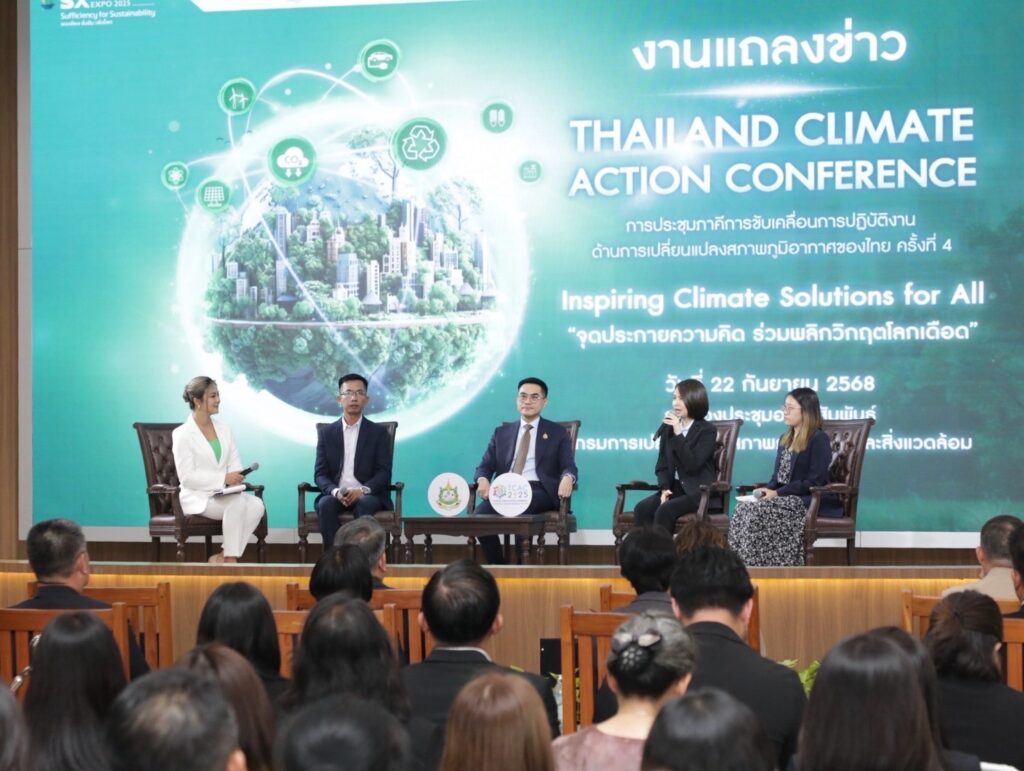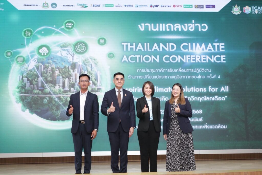 วันจันทร์ที่ 22 กันยายน 2568 กระทรวงทรัพยากรธรรมชาติและสิ่งแวดล้อม และภาคีเครือข่าย แถลงข่าวการจัดประชุมภาคีการขับเคลื่อนการปฏิบัติงานด้านการเปลี่ยนแปลงสภาพภูมิอากาศของไทย ครั้งที่ 4 หรือ Thailand Climate Action Conference: TCAC 2025 ภายใต้แนวคิด “จุดประกายความคิด ร่วมพลิกวิกฤตโลกเดือด (Inspiring Climate Solutions for All)” โดยได้รับเกียรติจาก ดร.พิรุณ สัยยะสิทธิ์พานิช อธิบดีกรมการเปลี่ยนแปลงสภาพภูมิอากาศและสิ่งแวดล้อม ประธานแถลงข่าว ร่วมกับ ดร.นภัส พันธ์พงษ์เจริญ กรรมการผู้จัดการ บริษัทซัสเทนอะบิลิตี้ เอ็กซ์โป จำกัด ดร.บุญทวี บุญให้ ผู้อำนวยการโรงเรียนสาธิตเทศบาลบ้านหัวหิน จังหวัดประจวบคีรีขันธ์ และคุณกานต์รวี ศรีแสงทรัพย์ แกนนำเยาวชน โครงการ Local Conference of Youth (LCOY) Thailand ณ อาคารกรมการเปลี่ยนแปลงสภาพภูมิอากาศและสิ่งแวดล้อม กรุงเทพฯดร.พิรุณ สัยยะสิทธิ์พานิช อธิบดีกรมการเปลี่ยนแปลงสภาพภูมิอากาศและสิ่งแวดล้อม เปิดเผยว่า “การเปลี่ยนแปลงสภาพภูมิอากาศเป็นความท้าทายที่ยิ่งใหญ่ของโลก ซึ่งส่งผลกระทบโดยตรงต่อทรัพยากรธรรมชาติ เศรษฐกิจ สังคม และคุณภาพชีวิตของประชาชน การรับมือกับปัญหานี้จำเป็นต้องอาศัยความร่วมมืออย่างจริงจังจากทุกภาคส่วนในสังคมเพื่อร่วมกันนำวิสัยทัศน์และนโยบายไปสู่การปฏิบัติที่เกิดผลอย่างแท้จริง สำหรับประเทศไทยได้แสดงเจตจำนงอย่างชัดเจนในการมุ่งสู่เป้าหมายความเป็นกลางทางคาร์บอนภายในปี ค.ศ. 2050 และบรรลุการปล่อยก๊าซเรือนกระจกสุทธิเป็นศูนย์ภายในปี ค.ศ. 2065 โดยกระทรวงทรัพยากรธรรมชาติและสิ่งแวดล้อมได้วางแนวทางการดำเนินงานเพื่อรับมือกับความท้าทายด้านสภาพภูมิอากาศ ครอบคลุมทั้งการจัดทำนโยบายและยุทธศาสตร์ การสนับสนุนงานวิจัยและนวัตกรรมสีเขียว การสร้างความตระหนักรู้และการมีส่วนร่วมของประชาชน ตลอดจนการเสริมศักยภาพการปรับตัวของชุมชนและระบบนิเวศ รวมถึงการประสานความร่วมมือระหว่างภาครัฐกับภาคเอกชน”“ภายใต้แนวทางดังกล่าว กระทรวงทรัพยากรธรรมชาติและสิ่งแวดล้อมร่วมกับภาคีเครือข่ายภาครัฐและเอกชน จึงได้การจัดประชุมภาคีการขับเคลื่อนการปฏิบัติงานด้านการเปลี่ยนแปลงสภาพภูมิอากาศของไทย ครั้งที่ 4 หรือ Thailand Climate Action Conference: TCAC 2025 เพื่อเป็นเวทีสำคัญในการรวมพลังขับเคลื่อนการแก้ไขปัญหาสภาพภูมิอากาศในประเทศไทย โดยมุ่งหวังให้ทุกภาคส่วนร่วมกันผลักดันการดำเนินงานให้บรรลุเป้าหมายการมีส่วนร่วมที่ได้กำหนดไว้ การประชุมครั้งนี้ยังถือเป็นก้าวสำคัญในการเชื่อมโยงความร่วมมือจากระดับนโยบายสู่การปฏิบัติจริงในพื้นที่ พร้อมเปิดโอกาสให้ภาคีเครือข่าย