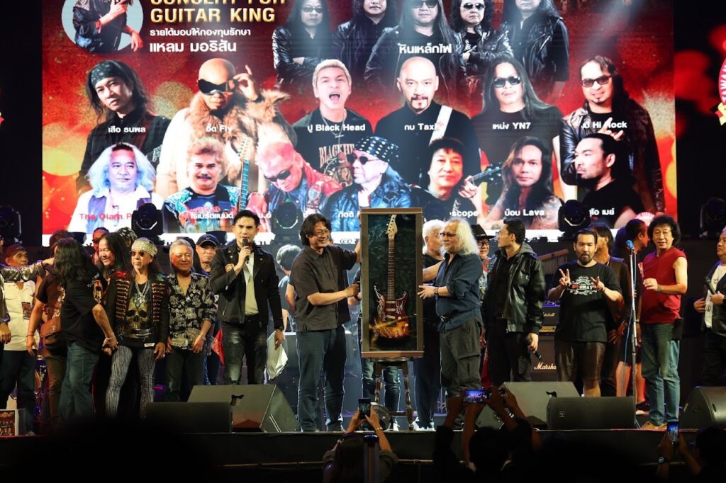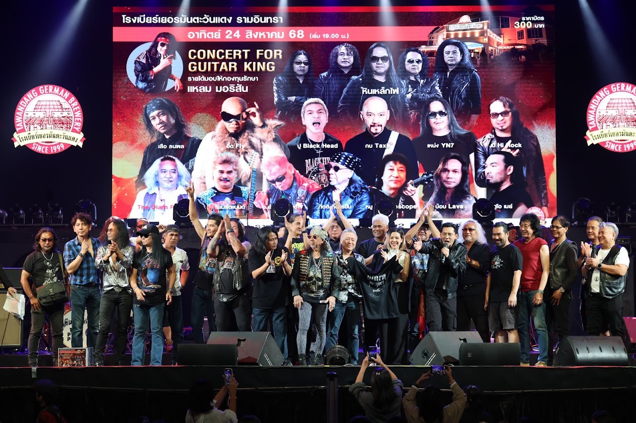 รวมพลังรักระเบิดพลังร็อคสุดมันส์ในงาน CONCERT FOR GUITAR KING 2025 การรวมตัวครั้งสำคัญที่ประวัติศาสตร์ต้องจารึก กับการสร้างปรากฏการณ์ส่งพลังรักให้ “ป๋าแหลม มอริสัน” เจ้าของฉายา กีตาร์คิงออฟไทยแลนด์ ณ โรงเบียร์เยอรมันตะวันแดง รามอินทรา นำโดยขุนพลเพลงร็อคแถวหน้า โป่ง หินเหล็กไฟ, กิตติ กีตาร์ปีน, โอ้ ดิ โอฬาร โปรเจ็คต์, อ.ปราชญ์ อรุณรังษี, ช.อ้น ณ บางช้าง, เอกมันต์ โพธิพันธุ์ทอง, เต๋า Sweat Rock, เบิร์ต Robert Band, หมู คาไลโดสโคป สมทบพลังร็อค 90s อี๊ด Fly, ปู Back Head, เหน่ง FN7, เสือ ธนพล, กบ Taxi, อู๋ ธรรพ์ณธร, ดูโอ เมย์, บ๊อบ Lava วง โจนาทาน ฯลฯ โดยมี นก บริพันธ์ ชัยภูมิ ที่มาจับกีต้าร์โชว์ลีลาความร็อค พ่วงหน้าที่พิธีกรร่วมกับ จิ้ม ชวนชื่น และ บี๋ สวิช ส่วนลูกสาวสุดที่เลิฟ “แนท ณัฐชา” ควงสามี “เป๊ก รัฐภูมิ” มางานด้วยความสุขเพราะได้เห็นคุณพ่อมีรอยยิ้มพร้อมสนุกไปตามจังหวะของเพลงดังระดับตำนานและเร้าใจขึ้นไปอีกขั้นกับไฮไลท์เด็ด เปิดประมูลกีต้าร์ตัวโปรดของ “แหลม มอริสัน” กีต้าร์คิง เมืองไทย พร้อมลายเซ็นของ “ป๋าแหลม” และเพื่อนศิลปินในกล่องวินเทจสุดเท่ ที่ปิดยอดไปได้ถึง 180,000 บาท ร่วมด้วยการประมูลของรักของพี่น้องชาวร็อค ด้าน “แอ๊ด คาราบาว” แม้ติดภารกิจที่ต่างจังหวัดแต่ร่วมสมทบทุน 100,000 บาท ส่วนโรงเบียร์เยอรมันตะวันแดง รามอินทรา มอบให้ 50,000 บาท รวมน้ำใจชาวร็อคเพื่อ “แหลม มอริสัน” ทั้งสิ้น 720,010 บาทโดยหัวเรือใหญ่ของงาน “โป่ง หิน เหล็กไฟ” เปิดใจบนเวทีว่า “ขอบคุณเพื่อนศิลปินทุกท่านที่มารวมตัวกันในวันนี้ ปีนี้พี่แหลมอายุ 81 ปีแล้ว ขอให้พี่แหลมมีความสุข สุขภาพแข็งแรง พวกเราจะช่วยกันแบบนี้ทุกๆ ปีครับ”ส่วน “โอ้ ดิ โอฬาร โปรเจ็คต์” เล่าถึงความรู้สึก “คอนเสิร์ตครั้งนี้จัดขึ้นเพื่อพี่แหลม นี่คือบารมีพี่แหลม สิ่งที่พี่แหลมทำไว้ให้ในวงการมีเยอะแยะมากมาย ตั้งแต่เริ่มต้นพี่แหลมเป็นแรงบันดาลใจให้นักดนตรีหลายรุ่นต่อหลายรุ่นนะครับ”“นก บริพันธ์” กล่าวเสริม “งานนี้ถือเป็นต้นแบบว่าความรักของพี่น้องมันมีจริง ความรักของรุ่นพี่รุ่นน้อง ครูบาอาจารย์นักดนตรีสายร็อค ผมเห็นและซาบซึ้งมากๆ ครับ”ด้าน “แนท ณัชฐา” ลูกสาวคนสวย เผยความในใจ “หนูดีใจแทนคุณพ่อมากๆ ทุกครั้งที่มางานวันเกิดคุณพ่อ พี่ๆ อาๆ ทุกท่านก็มาแสดงความรักและส่งกำลังใจให้กับคุณพ่อเยอะมาก รู้สึกดีใจทุกครั้งที่ได้เจอ อยากขอบคุณแทนคุณพ่อที่ทำเพื่อคุณพ่อมากขนาดนี้ และแนทก็เชื่อว่านี่เป็นกำลังใจให้คุณพ่อฟื้นตัวอย่างเร็วมาก ขอบคุณจากใจค่ะ”นอกจากนี้ “ป๋าแหลม” ยังกล่าวปิดท้ายอย่างอารมณ์ดี “ไม่คิดเลยว่าจะโด่งดังข