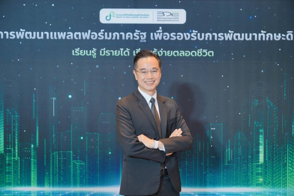 วันนี้ (25 กุมภาพันธ์ 2569) กระทรวงดิจิทัลเพื่อเศรษฐกิจและสังคม โดยสำนักงานคณะกรรมการดิจิทัลเพื่อเศรษฐกิจและสังคมแห่งชาติ (BDE : National Board of Digital Economy and Society) จัดงานแถลงข่าวเปิดตัวและพิธีลงนามบันทึกความเข้าใจ (MOU) “โครงการพัฒนาแพลตฟอร์มภาครัฐเพื่อรองรับการพัฒนาทักษะดิจิทัล เรียนรู้ มีรายได้ เรียนรู้ง่ายตลอดชีวิต หรือ BDE Learn to Earn” ณ ห้องประชุม Asawin Ballroom A โรงแรม Asawin Grand Convention กรุงเทพฯ โดยมีนายเวทางค์ พ่วงทรัพย์ เลขาธิการคณะกรรมการดิจิทัลเพื่อเศรษฐกิจและสังคมแห่งชาติ เป็นประธานในพิธีเปิด พร้อมด้วยนางสาวพลอยรวี เกริกพันธ์กุล ผู้อำนวยการกองขับเคลื่อนดิจิทัลเพื่อสังคม กล่าวรายงานวัตถุประสงค์และแนวทางดำเนินโครงการ โดยผู้เข้าร่วมงานมาจากทั้งหน่วยงานภาครัฐ ภาคเอกชน สถาบันการศึกษา และสื่อมวลชน