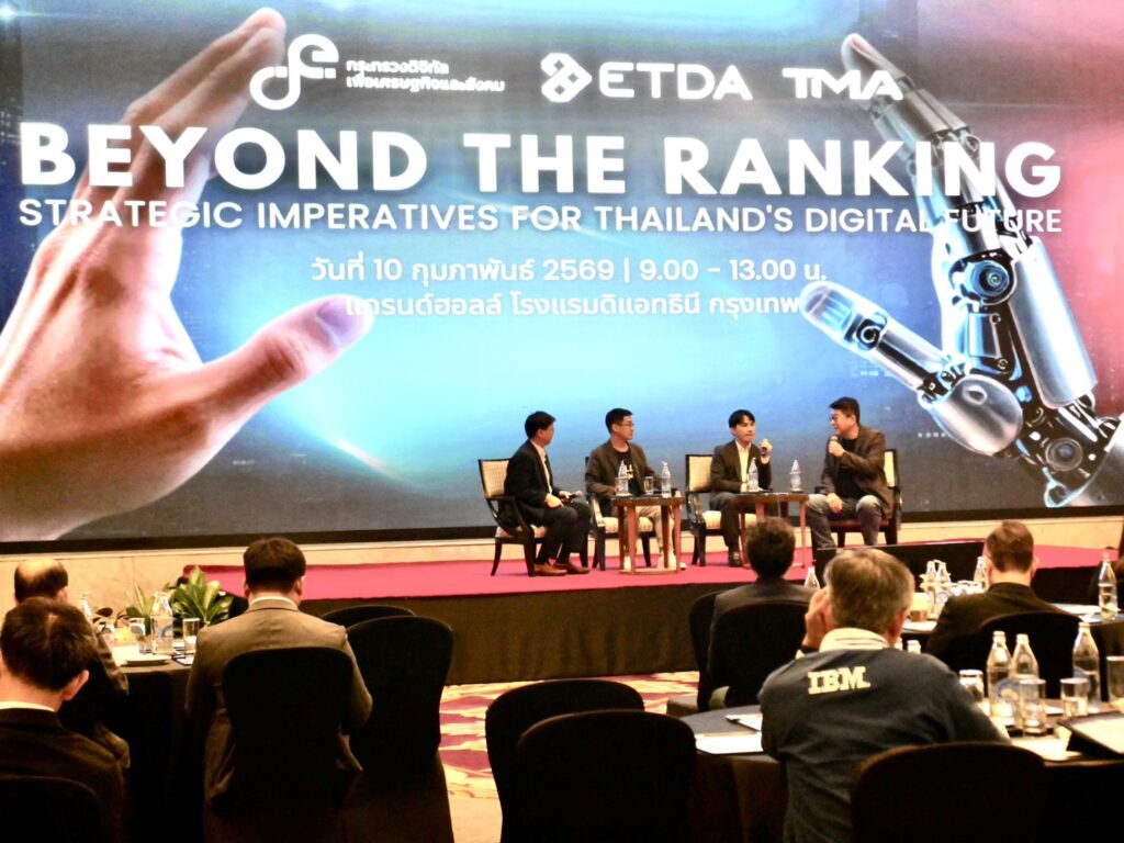 กระทรวงดิจิทัลเพื่อเศรษฐกิจและสังคม โดยสำนักงานพัฒนาธุรกรรมทางอิเล็กทรอนิกส์ (ETDA) ร่วมกับ สมาคมการจัดการธุรกิจแห่งประเทศไทย (TMA) จัดงาน “BEYOND THE RANKING – Strategic Imperatives For Thailand’s Digital Future” เวทีแลกเปลี่ยนมุมมองเชิงยุทธศาสตร์เพื่อขับเคลื่อนอนาคตดิจิทัลของประเทศไทย โดยมีเป้าหมายเพื่อสร้างความเข้าใจเชิงลึกเกี่ยวกับขีดความสามารถในการแข่งขันด้านดิจิทัล และกำหนดทิศทางการพัฒนาประเทศให้สามารถก้าวข้ามข้อจำกัดของการจัดอันดับ สู่การยกระดับศักยภาพในระดับสากลการจัดงานในครั้งนี้เป็นส่วนหนึ่งของโครงการ Driving a Nation Towards World Digital Competitiveness ซึ่งมุ่งสื่อสารและสนับสนุนการยกระดับความสามารถในการแข่งขันด้านดิจิทัลของประเทศไทย สอดคล้องกับนโยบายของกระทรวงดิจิทัลเพื่อเศรษฐกิจและสังคม ที่ให้ความสำคัญกับการพัฒนาเศรษฐกิจดิจิทัลและการประยุกต์ใช้เทคโนโลยีปัญญาประดิษฐ์ (AI) ในทุกภาคส่วน ทั้งภาคการผลิต อุตสาหกรรม และผู้ประกอบการ SMEs เพื่อเพิ่มขีดความสามารถในการแข่งขัน ลดต้นทุน และยกระดับประสิทธิภาพทางเศรษฐกิจ โดยมีเป้าหมายผลักดันเศรษฐกิจดิจิทัลให้มีสัดส่วนเพิ่มขึ้นอย่างมีนัยสำคัญ และยกระดับอันดับความสามารถในการแข่งขันด้านดิจิทัลของประเทศในเวทีโลกหนึ่งในไฮไลต์สำคัญของงานคือการบรรยายพิเศษจาก ศาสตราจารย์อาร์ทูโร บริส (Prof. Arturo Bris) ผู้อำนวยการ IMD World Competitiveness Center ประเทศสวิตเซอร์แลนด์ ซึ่งได้อธิบายว่า IMD ทำการจัดอันดับ World Digital Competitiveness Rankings เพื่อสะท้อนความสามารถและความพร้อมของประเทศต่างๆ ในการขับเคลื่อนกระบวนการ Digital Transformation ผ่านตัวชี้วัด 3 ด้าน ได้แก่ องค์ความรู้ (Knowledge), เทคโนโลยี (Technology) และ ความพร้อมสำหรับอนาคต (Future Readiness) โดยในปี 2568 ประเทศไทยอยู่ในอันดับที่ 38 จากทั้งหมด 68 ประเทศศาสตราจารย์อาร์ทูโร ระบุว่า Future Readiness เป็นตัวชี้วัดที่สำคัญและพัฒนาได้ยากที่สุด เนื่องจากสะท้อนความพร้อมของภาคธุรกิจในการรับมือกับการเปลี่ยนแปลงทางเทคโนโลยี โดยภาคธุรกิจไทยกำลังเผชิญความท้าทายหลัก ได้แก่ ความสามารถในการปรับตัวที่ลดลง และมุมมองของผู้บริหารระดับสูงที่เห็นว่าองค์กรปรับตัว และคว้าโอกาสทางดิจิทัลได้ช้าลง ซึ่งการยกระดับความสามารถดังกล่าวจำเป็นต้องอาศัยการเปลี่ยนแปลงวัฒนธรรมองค์กร การลงทุนด้านดิจิทัล และการให้ความสำคัญกับนวัตกรรมในระดับผู้นำในด้านนวัตกรรม สามารถแบ่งออกเป็น 3 รูปแบบ ได้แก่ นวัตกรรมเชิงพัฒนา (Evolutionary Innovation) ซึ่งเป็นการยกระดับผลิตภัณฑ์หรือบริการเดิม นวัตกรรมเชิงปฏิวัติ (Revolutionary Innovation) ซึ่งเป็นการสร้างผลิตภัณฑ์หรือเทคโนโลยีรูปแบบใหม่ และ นวัตกรรมพลิกเกม (Disruptive Innovation) ซึ่